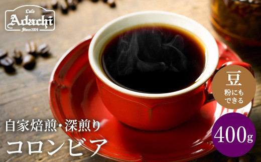 - S10-52 カフェ・アダチ 厳選した肉厚深煎りコーヒー豆 コロンビア 400g(40杯分) 【30営業日】(45日程度)を目安に発送