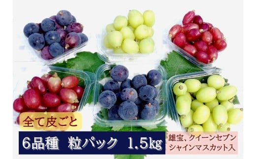 全部皮ごと・農家自慢の6品種パック 1.5kg ナガノパープル・クイーンセブン・雄宝入り 250gパック×6個【配送時期:8月下旬】【配送不可:離島】