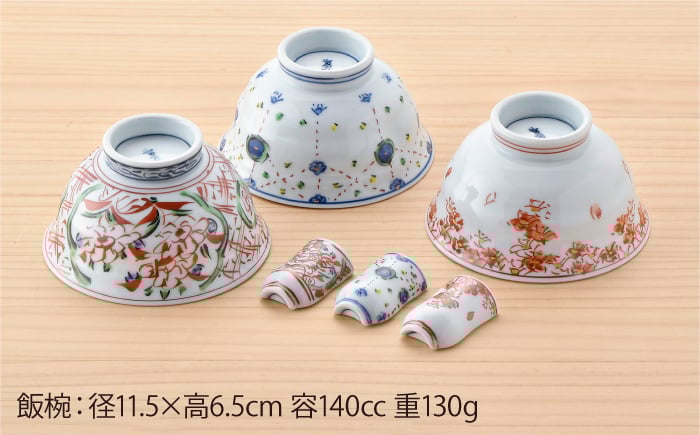 - 【波佐見焼】伝統柄 飯椀・箸置き3個セット 茶碗 どんぶり 食器 食器 皿 【一夢窯】 [XE04]