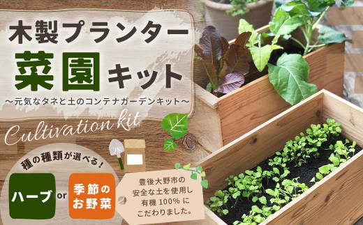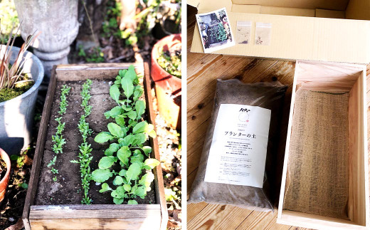 - 095-715-H 木製プランター菜園キット~元気なタネと土のコンテナガーデンキット~ハーブ ガーデニング