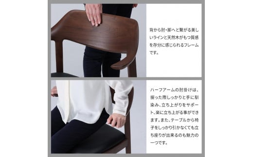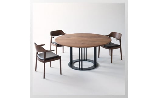 - 旭川家具 カンディハウス WING LUX LD サイドチェアー H ウォルナットCW / 張地(革)RK-BL / RB ラウンドテーブル φ150 ウォルナットOFN