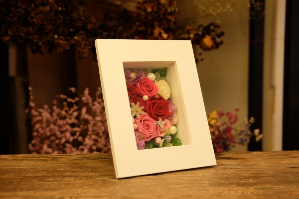 空間を華やかに プリザーブドフラワー「フレーム(M)」 茶 レッド&ピンク系 [№5312-7162]0576