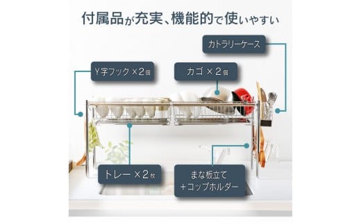 シンク上 伸縮式 システム 水切りラック 奥行23cm 1段 (カゴ×2) スリム ステンレス製 キッチン用品 燕三条製 [川口工器]【050S016】