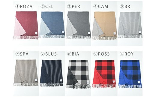 - WOOLTONE リバーシブルフリンジストール ビックサイズ【ROY(ブルー・黒チェック×無地ブルー)】 D46-03