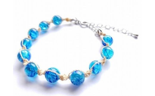 - 宮古島産苧麻糸とホタルガラスのブレスレット(フリーサイズ)