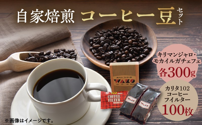 - ZD6083n_自家焙煎コーヒー豆(キリマンジャロ・モカイルガチェフェ)各300gとカリタ102コーヒーフイルター100枚セット