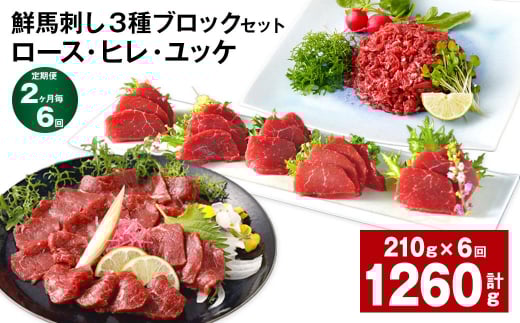 【2ヶ月毎6回定期便】鮮馬刺し 3種ブロックセット(ロース・ヒレ・ユッケ)