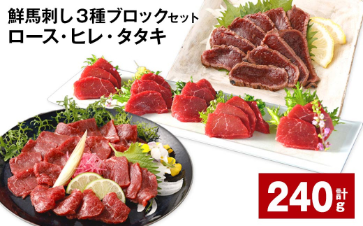 鮮馬刺し 3種ブロックセット(ロース・ヒレ・タタキ) 計約240g