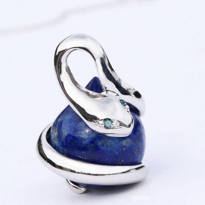【ふるさと納税】ラピスラズリの宝珠を抱く白蛇 シルバー根付 659-880【配送不可地域:離島・沖縄県】【1490510】