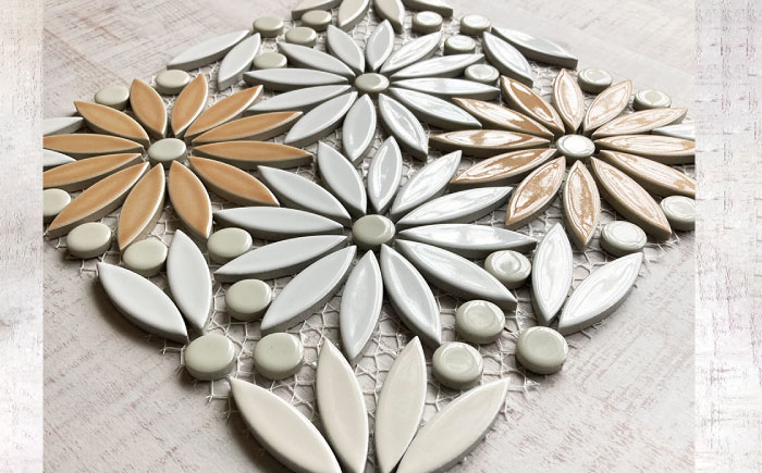 美濃焼タイル デザインシート「オアーゼ」ホワイト×オレンジ(裏ネット貼り)【丸万商会】 [TCB006]