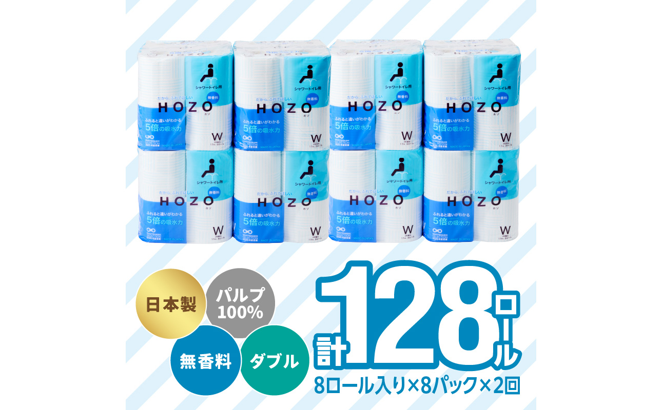 - 【T10041】【隔月配送】トイレットペーパーHOZO(8ロール×8パック)2回お届け定期便