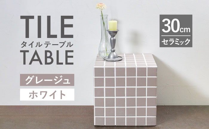 - 【美濃焼】 タイルテーブル グレージュ×ホワイト 【エクシィズ】 [TBK002]