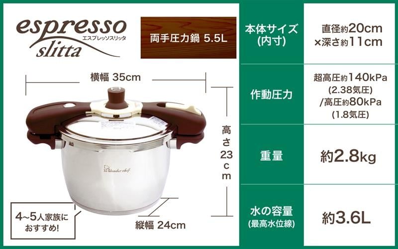 魔法のクイック料理 両手圧力鍋エスプレッソスリッタ5.5L