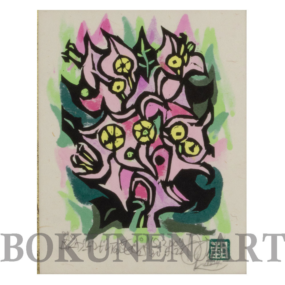 - 名嘉睦稔 木版画「ブーゲンビレアの花」&島の特産品No4ーA