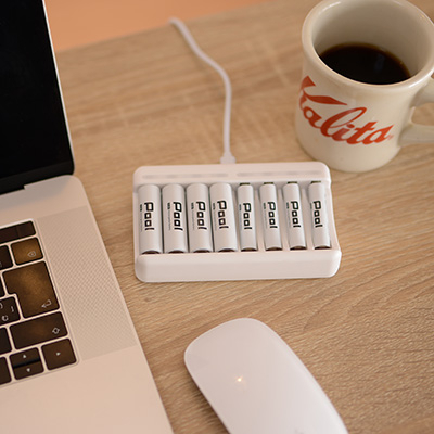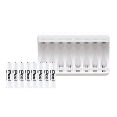 - ニッケル水素充電池Pool-プールー(単4形充電池8本+8ポート充電器)セット【1212965】