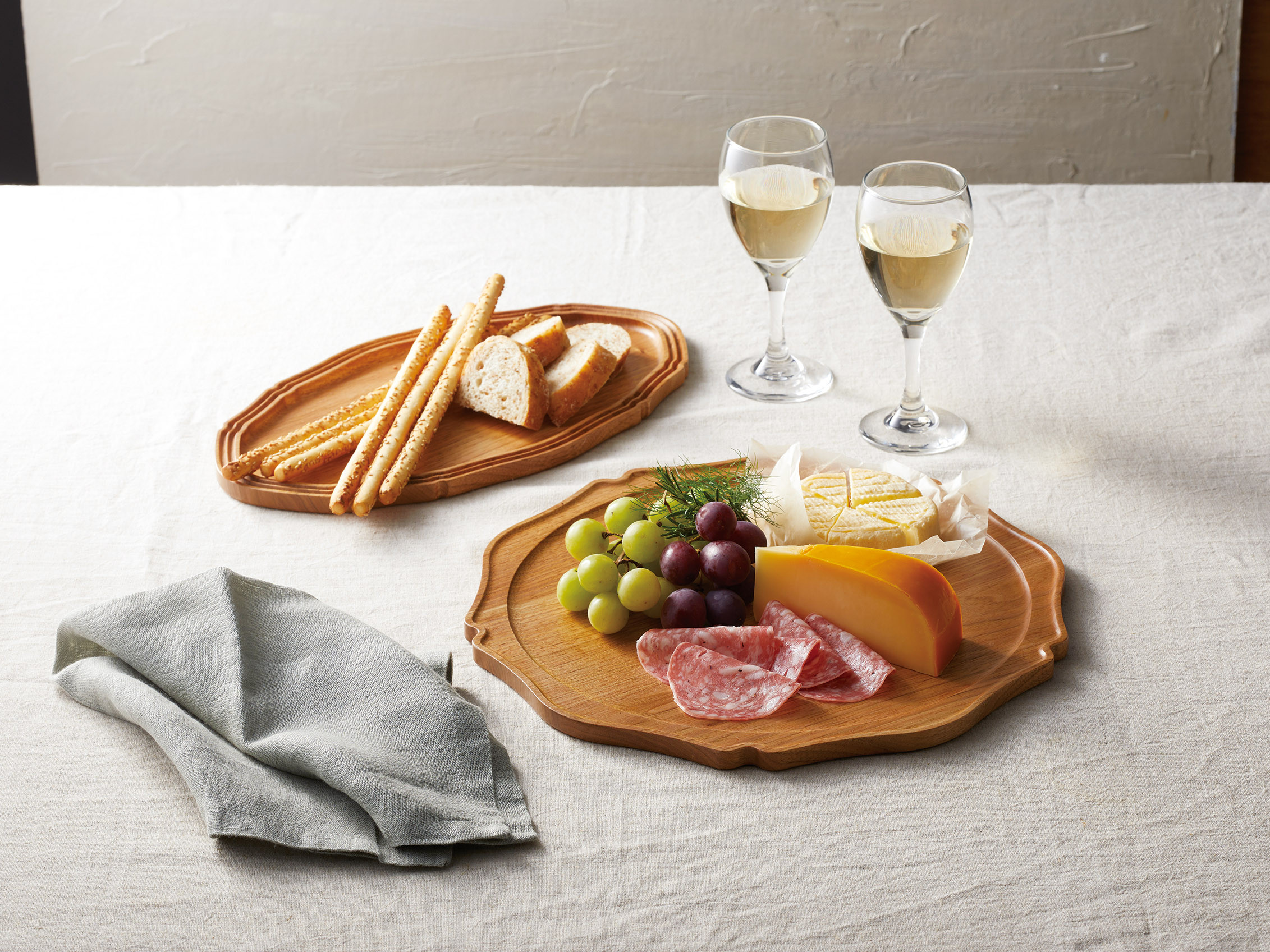 - 国産くるみ彫刻多目的トレイ 丸型〈15602〉