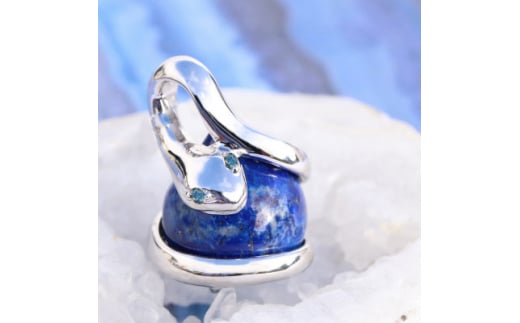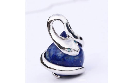 ラピスラズリの宝珠を抱く白蛇 シルバー根付 659-880【1490510】