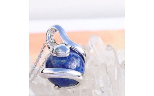 - ラピスラズリの宝珠を抱く白蛇 シルバー根付 659-880【1490510】