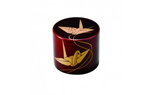 - 紀州漆器 文鎮 ペーパーウェイト 丸型 溜 折鶴【YG167】