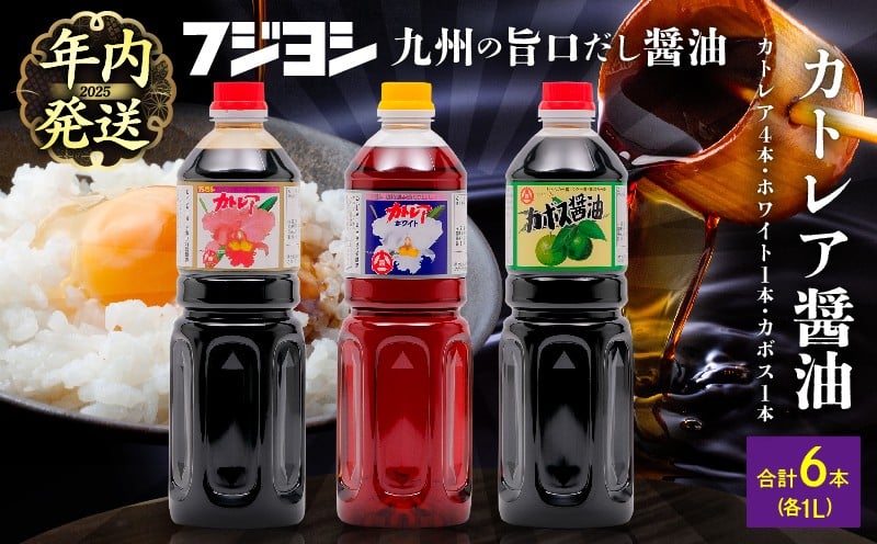 カトレア醤油1L4本、かぼす醤油1L1本、カトレアホワイト醤油1L1本セット
