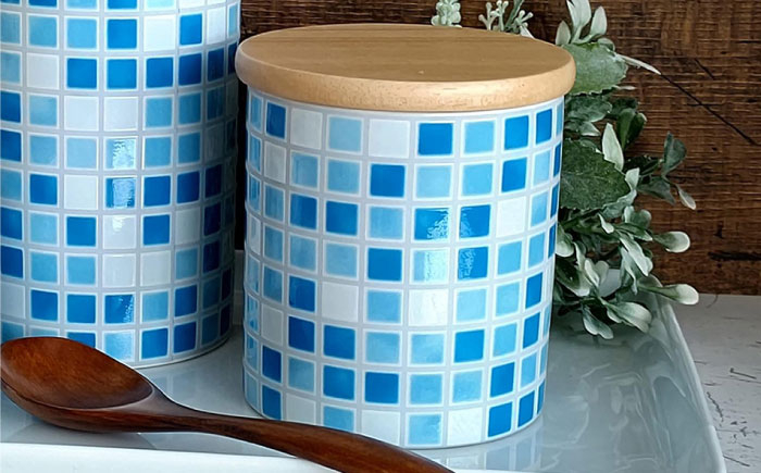 - 【美濃焼】TILE-Style キャニスター S/M/Lセット ブルー【青木転写】キッチン雑貨 保存容器 ふた付き容器 [MFY005]