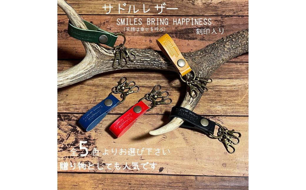 サドルレザー キーホルダー 本革 ブルー smiles bring happiness.刻印入り SLK-002-blue 青 メンズ レディース 【015S125】