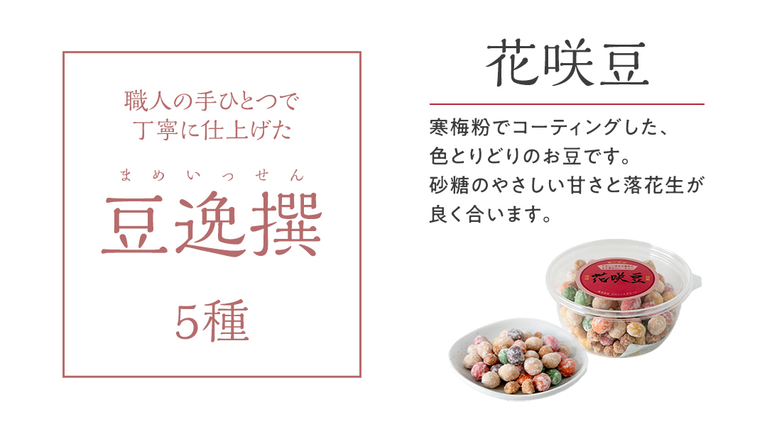 - 豆逸撰(5個入) お菓子 落花生 豆菓子 味噌 ピーナッツ みそ落花 黒糖落花 きなこ大豆 花咲豆 みそバター落花 おやつ ギフト 贈り物 [A008-NT]