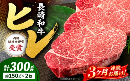 【3回定期便】 ヒレ ステーキ 長崎和牛 約300g ( 2枚 ) 西海市 ヒレステーキ ヒレ ひれ ステーキ 和牛 長崎和牛 <株式会社 黒牛> [CBA004]
