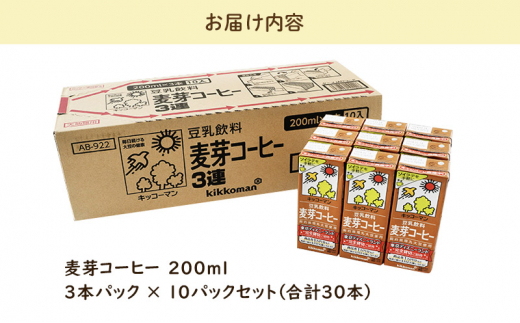 - キッコーマン 3連 麦芽コーヒー 200ml 30本セット 3連10パックセット