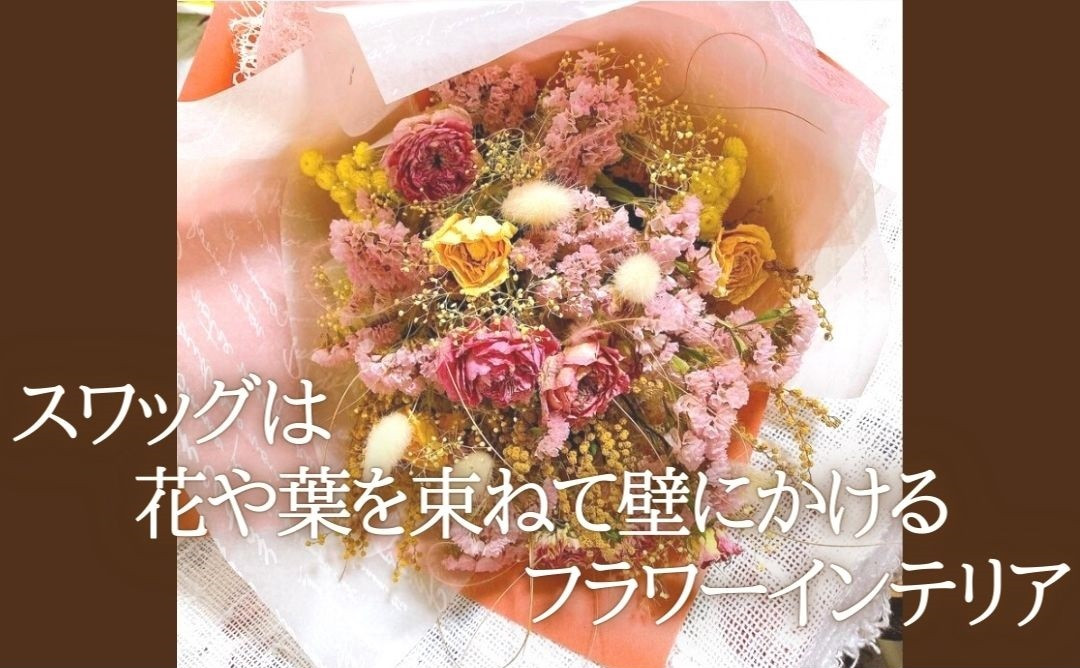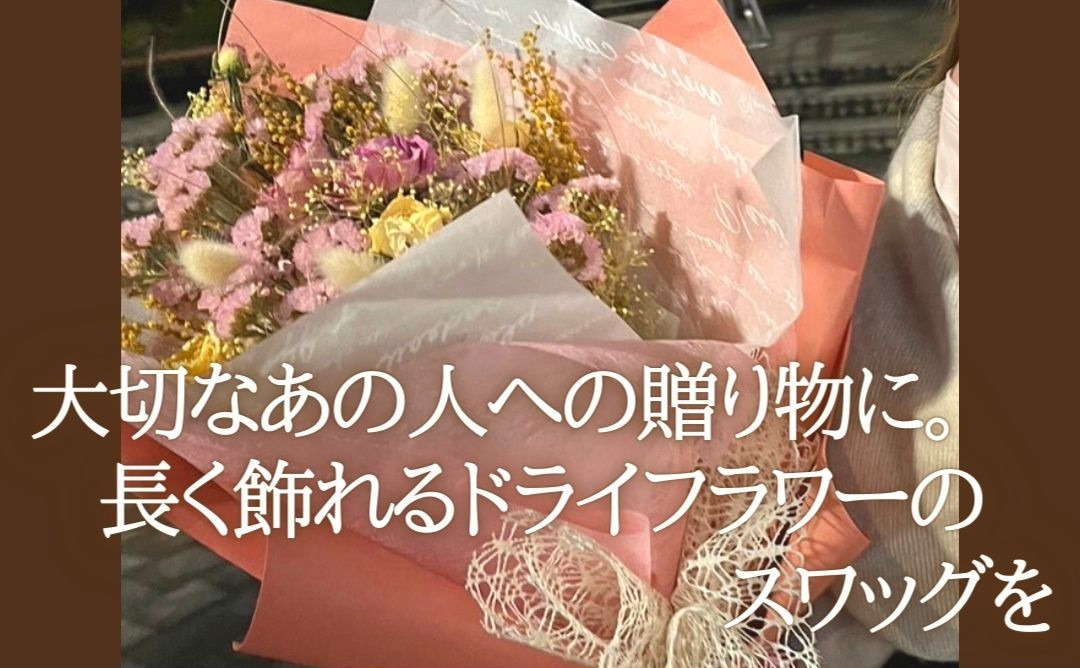 ドライフラワーのナチュラルスワッグ Sサイズ(セミオーダー)【atelier multicolore】| ドライフラワー スワッグ プレゼント 花束 誕生日 敬老の日 卒業 退職 ミルティコロール