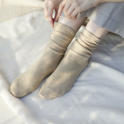 裏返しオーガニックコットンソックス(杢ベージュ)1足/NSGK22-06【1447248】