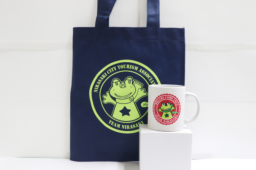 - ニーラのマグカップ (両面)×1 & ニーラのオリジナル不織布バッグ×1 [韮崎市観光協会 山梨県 韮崎市 20741967] ニーラ ゆるキャラ キャラクター マグカップ トートバッグ かわいい セット