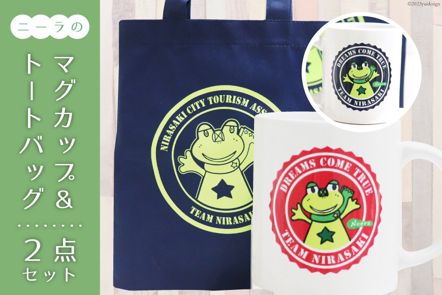 ニーラのマグカップ (両面)×1 & ニーラのオリジナル不織布バッグ×1 [韮崎市観光協会 山梨県 韮崎市 20741967] ニーラ ゆるキャラ キャラクター マグカップ トートバッグ かわいい セット