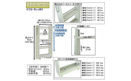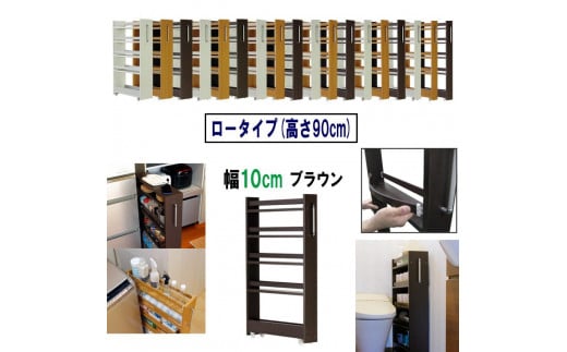 - 【ブラウン × 幅 10cm】すき間収納ワゴン ロータイプ 転び止めバー付き