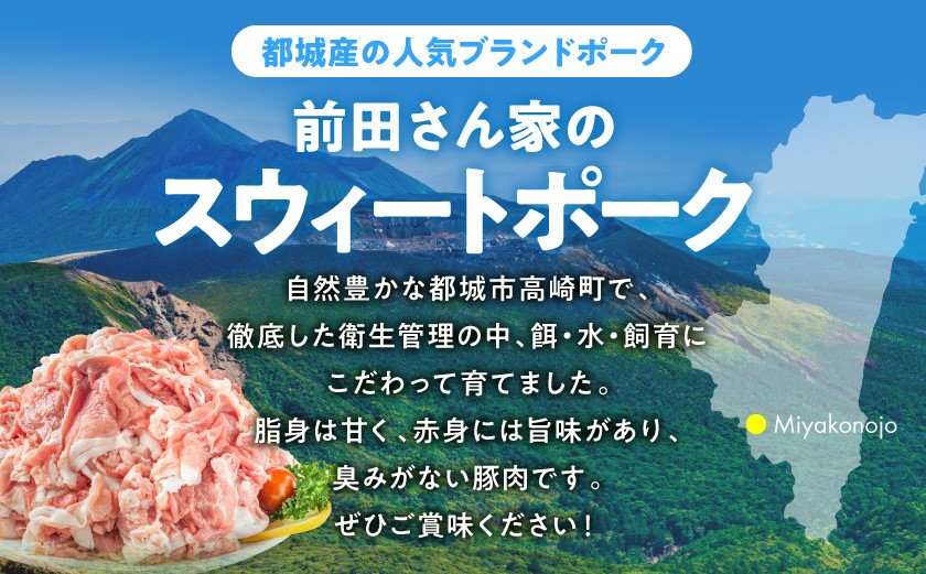 「前田さん家のスウィートポーク」ロース・バラ・肩ロース切り落とし1.5kg_AA-8902_(都城市) 豚肉 豚ロース切り落とし肉 豚バラ切り落とし 豚肩ロース切り落とし 各500g×1パック 計1.5キロ