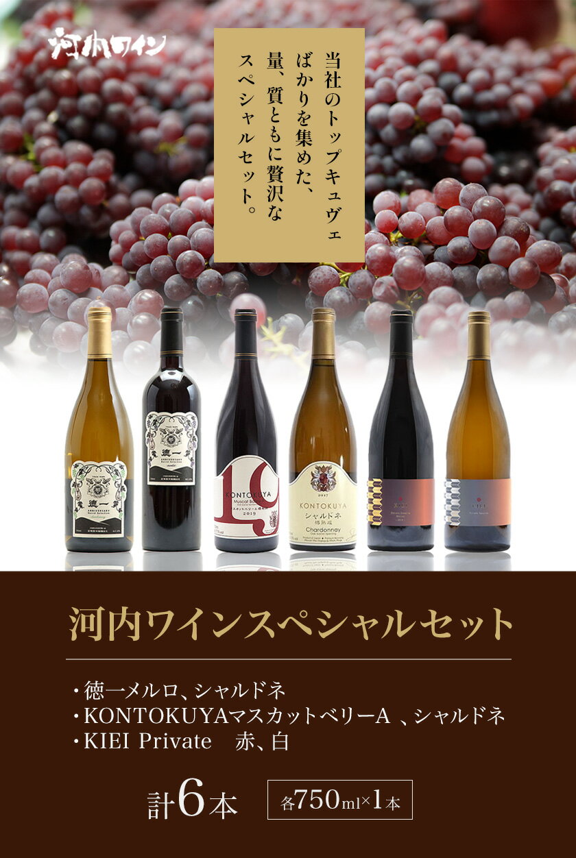 【ふるさと納税】河内ワイン スペシャルセット 徳一メルロ シャルドネ KONTOKUYAマスカットベリーA シャルドネ KIEI Private 赤 白 各750ml×1本 計6本 株式会社河内ワイン《30日以内に出荷予定(土日祝除く)》大阪府 羽曳野市 ワイン 酒 アルコール 送料無料