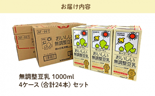キッコーマン 無調整豆乳1000ml 24本セット 1000ml 4ケースセット
