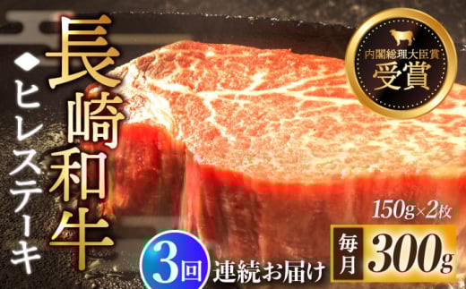 【先行予約】【全3回定期便】「希少部位」長崎和牛 ヒレ ステーキ 計900g (約300g/回)【黒牛】 [QBD029] 肉 和牛 国産 焼肉 89000円 8万9千円