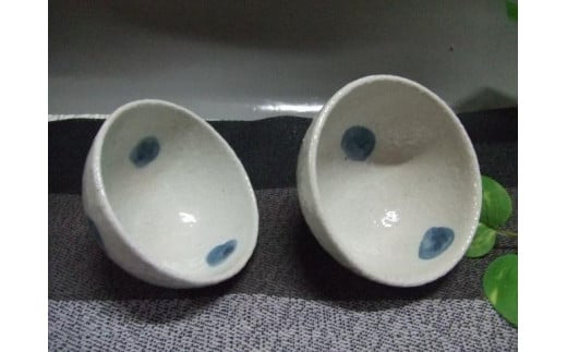 - 【信楽焼】青いしずくごはん茶碗ペアーセット nwu-018