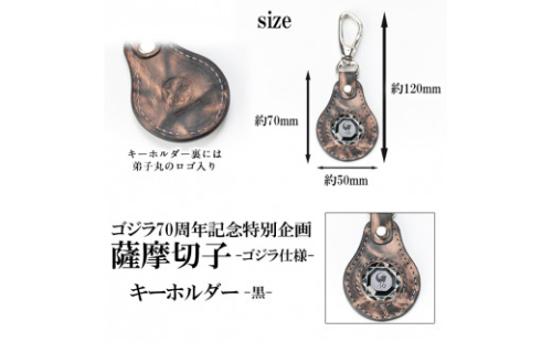 K-184-C ゴジラ70周年記念特別企画 ゴジラ仕様薩摩切子(キーホルダー:黒)【美の匠ガラス工房弟子丸】霧島市 ガラス細工 日本製 革 キーホルダー ギフト プレゼント