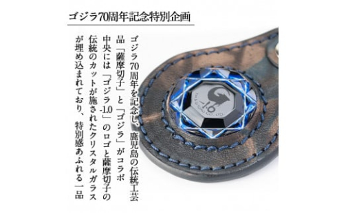 - K-184-C ゴジラ70周年記念特別企画 ゴジラ仕様薩摩切子(キーホルダー:黒)【美の匠ガラス工房弟子丸】霧島市 ガラス細工 日本製 革 キーホルダー ギフト プレゼント