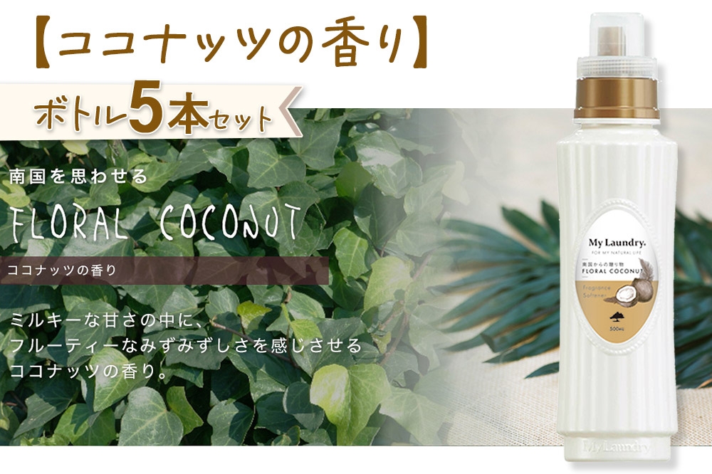 《定期便12ヶ月》ノンシリコン柔軟剤 マイランドリー (500ml×5個)【ココナッツの香り】