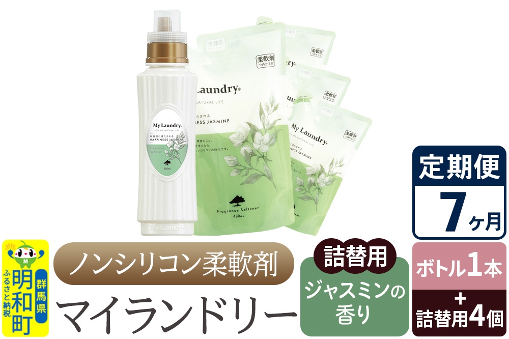 - 《定期便7ヶ月》ノンシリコン 柔軟剤 マイランドリー (ボトル1本+詰替用4個セット)【ジャスミンの香り】