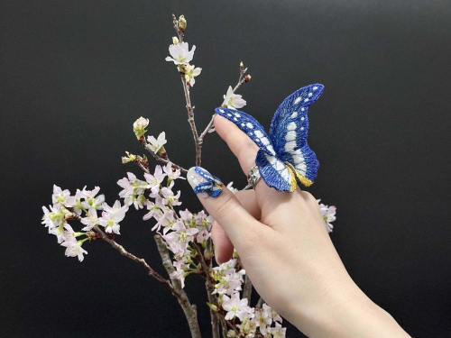 - 立体刺繍の蝶(ヘレナモルフォ蝶)