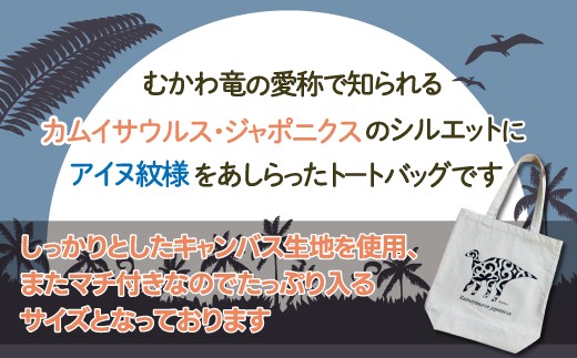 カムイサウルス・ジャポニクス×アイヌ紋様柄トートバッグ(01ナチュラル) 【 トートバッグ バッグ おしゃれ カムイサウルス 恐竜 きょうりゅう 】 MKWB003