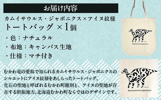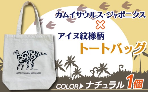 - カムイサウルス・ジャポニクス×アイヌ紋様柄トートバッグ(01ナチュラル) 【 トートバッグ バッグ おしゃれ カムイサウルス 恐竜 きょうりゅう 】 MKWB003