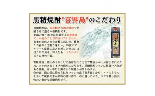 奄美黒糖焼酎 喜界島 紙パック 25度 1800ml×6本 奄美 黒糖焼酎 ギフト 奄美大島 お土産