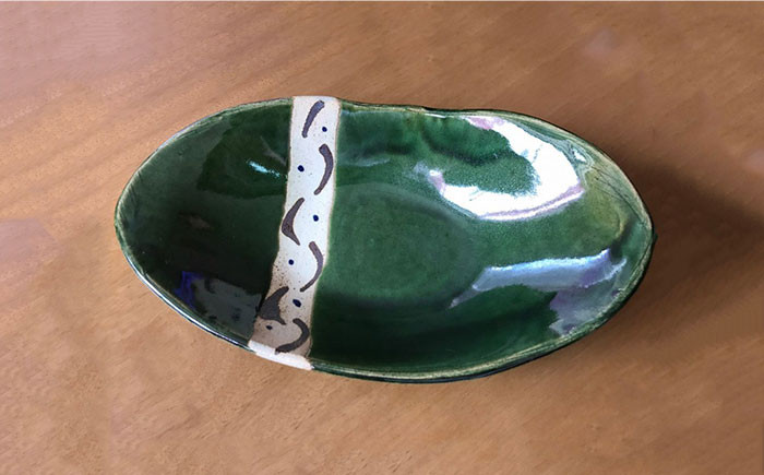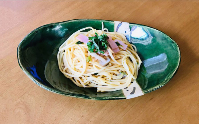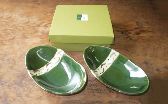 - 【美濃焼】織部手作り楕円大鉢揃え 2個セット【みつはし窯 たなか工房】 [MAC002]