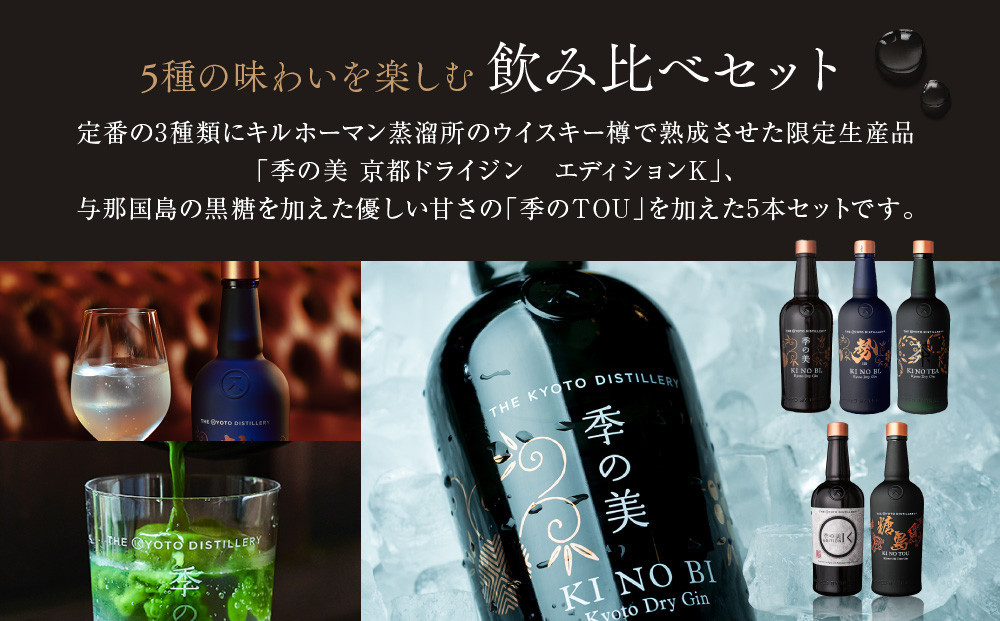 - 【京都蒸溜所】[数量限定]ジン飲み比べ5種セット(季の美&勢&季のTEA&エディションK&季のTOU)