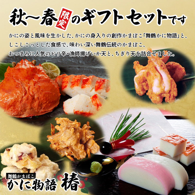 【発送期間限定】 嶋七 かに物語 椿 6種類 7個入 蒲鉾セット ちぎり天 さつま揚げ 創作蒲鉾 京都 舞鶴 まいづる蒲鉾 かまぼこ カマボコ おつまみ つまみ セット 盛り合わせ ギフト 贈答 熨斗